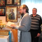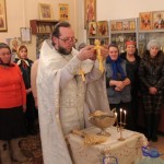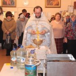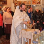 В конце Литургии состоялся Великий чин освящения воды, по окончании которого батюшка поздравил всех с праздником и окропил верующих святой водой.