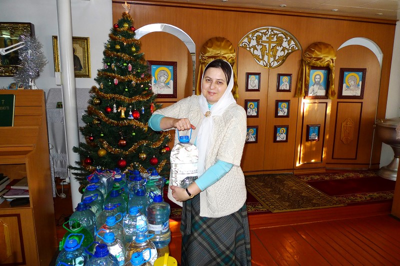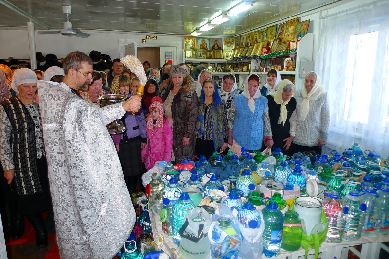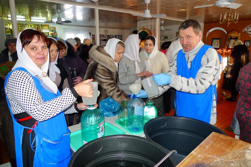 Наш батюшка весь день освящал воду, а народ ее брал и брал — сколько хочется.