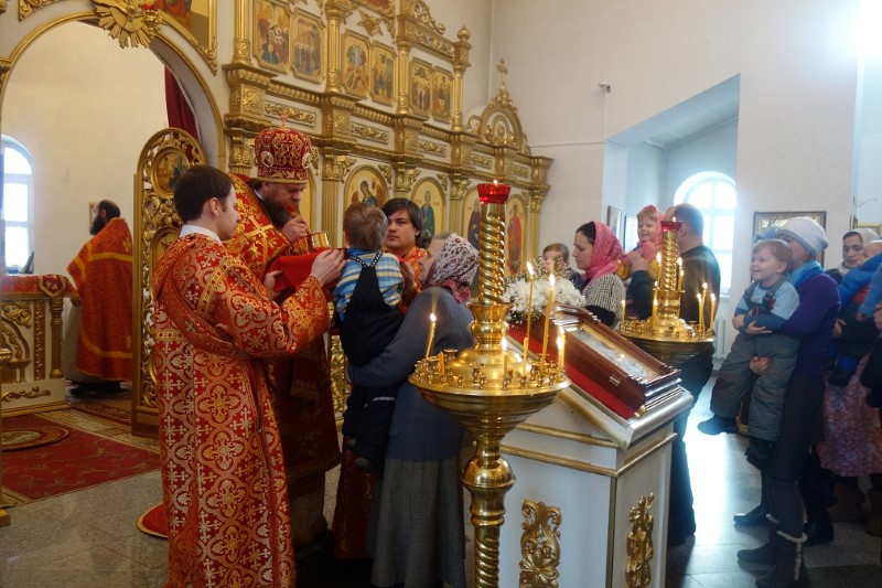По окончании Литургии Владыка поздравил всех с воскресным днем, а также причастников с принятием Святых Христовых Таин.