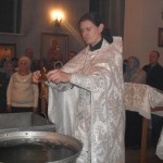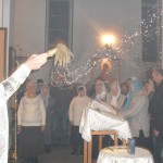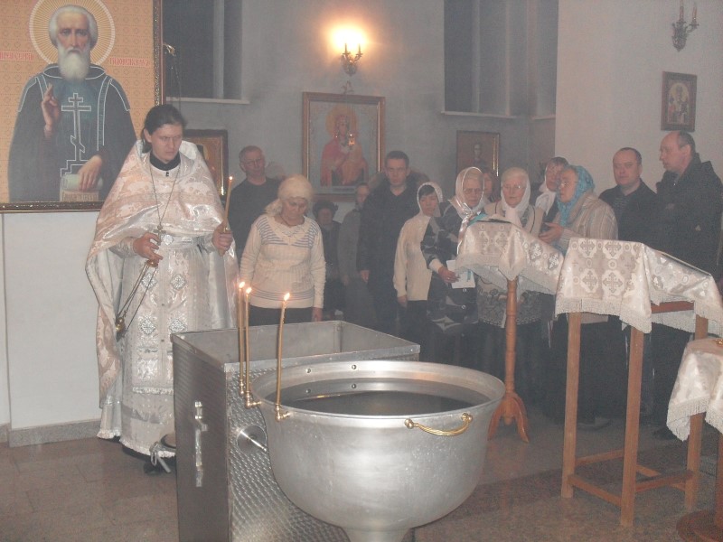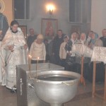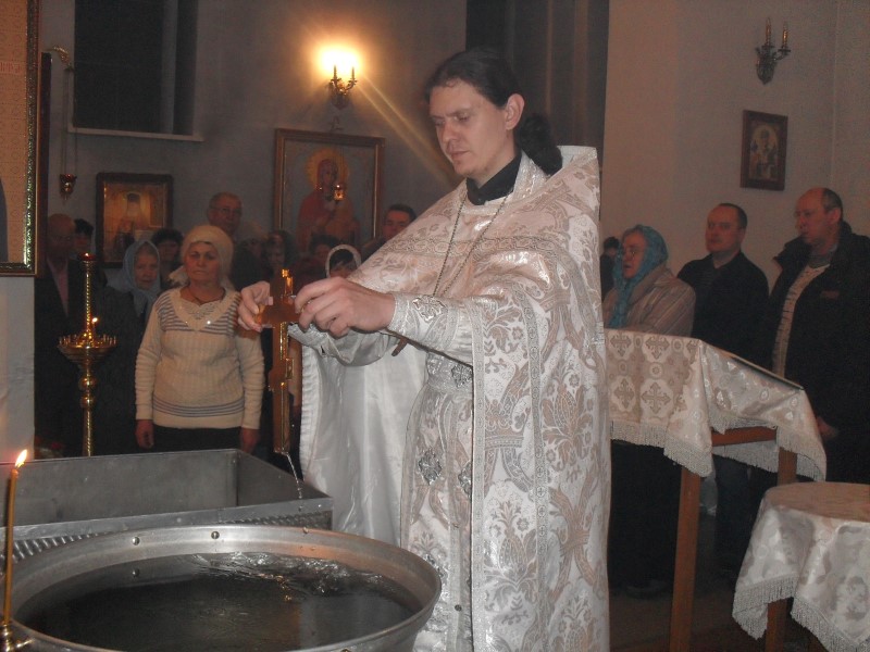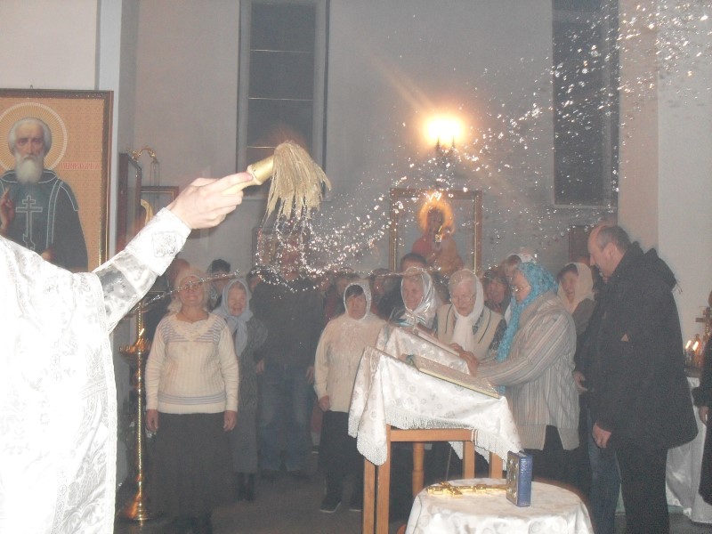 По окончании Божественной литургии был совершен Великий чин освящения воды, в конце которого батюшка покропил всех святой водой и поздравил с праздником.