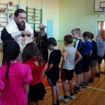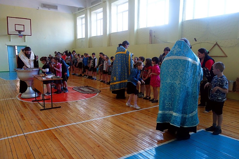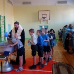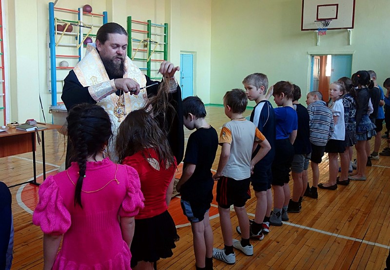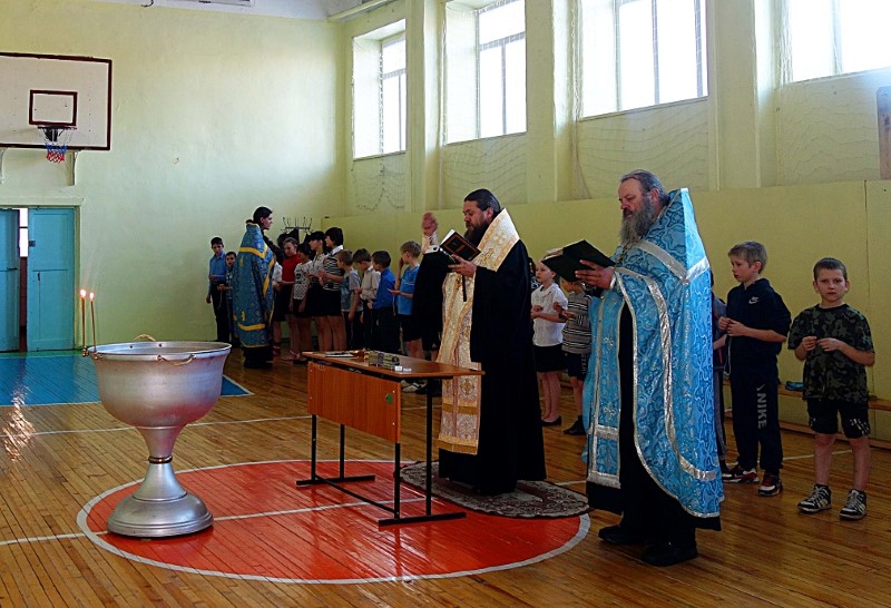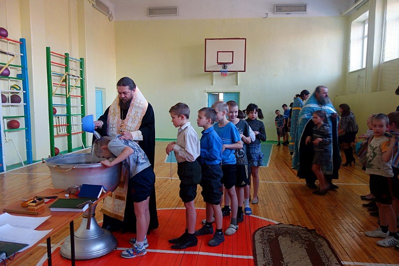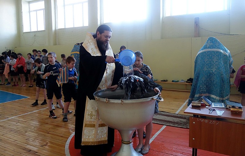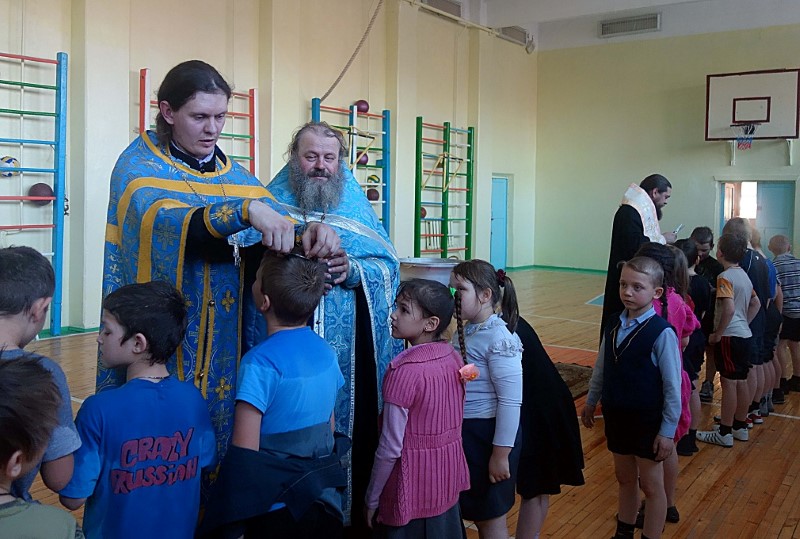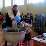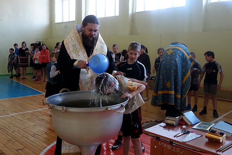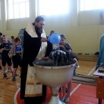 26 января, во вторник, Его Преосвященство епископ Филипп, иерей Константин Карамышев и иерей Сергий Гранкин прибыли в Ордынскую школу-интернат, в спортзале которой уже собрались все желающие принять Таинство Крещения.