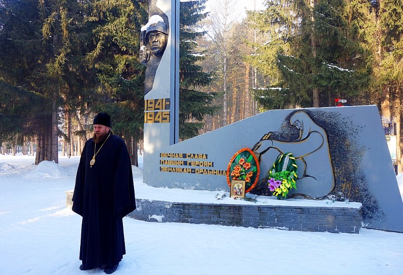 В 10.00 Его Преосвященство епископ Филипп возглавил заупокойную литию у памятника погибшим воинам в Ордынске.