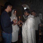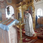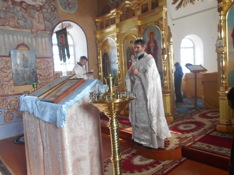 За Литургией Святых Христовых Таин причастилось 15 человек. А ранним утром, еще до начала Литургии, батюшку пригласили домой к болящей женщине. Батюшка исповедовал ее, и она приняла преждеосвященные Святые Дары, принесенные им в дароносице.