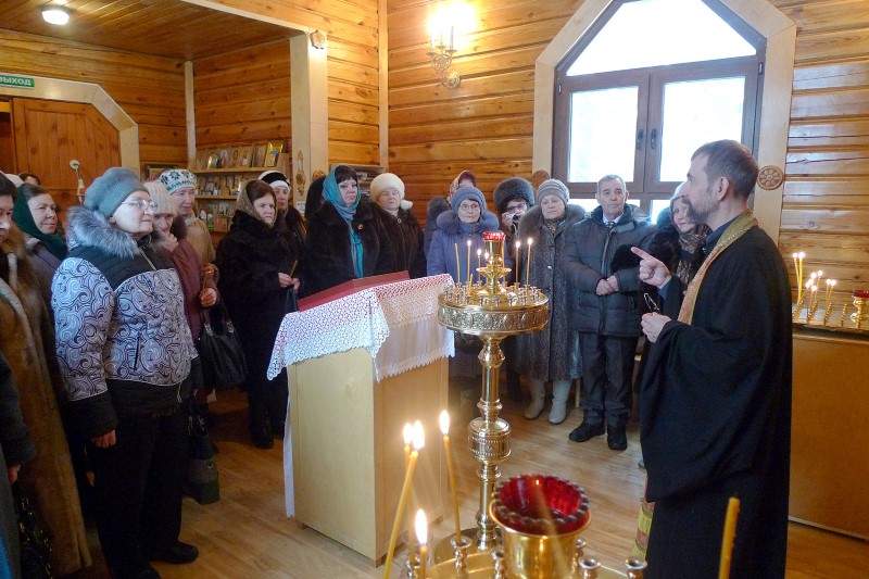 Приехал целый автобус гостей на экскурсию в санаторий, но сначала они зашли в храм. Настоятель прихода протоиерей Алексей Лебедев их уже ждал. Полный храм людей — это любому настоятелю очень приятно. Все вместе служили молебен.