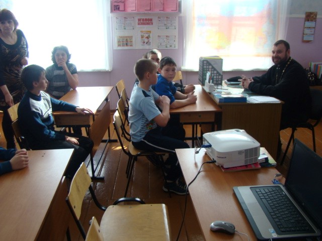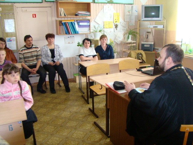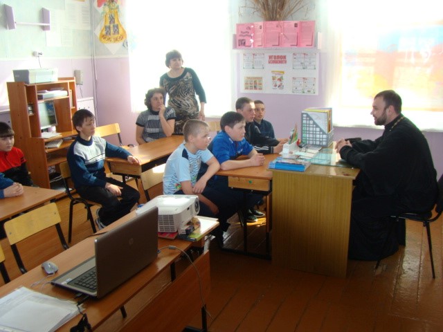 Беседа проходила полтора часа в душевной обстановке. Батюшка отвечал на все вопросы учителей и родителей, рассказывал о различии преподавания православной культуры и «Закона Божия», какое преимущество оно даёт перед «Светской этикой», доходчиво объяснил, что понимание русской классической литературы невозможно без знания основ православия, его истории и канонов.