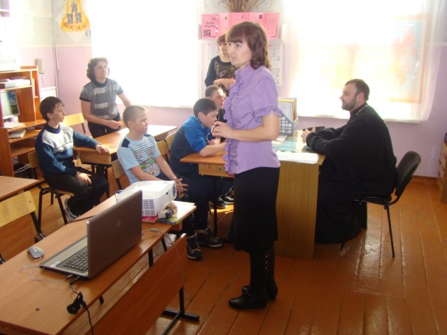 Он привёз подборку учебных пособий и программ по выбираемым модулям. Представил их и подробно рассказал о каждом модуле, и особое внимание уделил модулю «Основы православной культуры», ведь последние годы в школе родители выбирали преподавание «Светской этики».