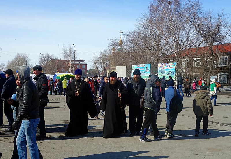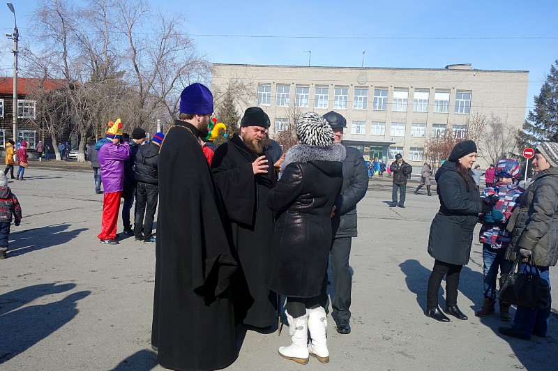13 марта/воскресение. В 12.00 по окончании Божественной литургии на главной площади г. Карасука состоялось празднование Масленицы и проводы зимы.