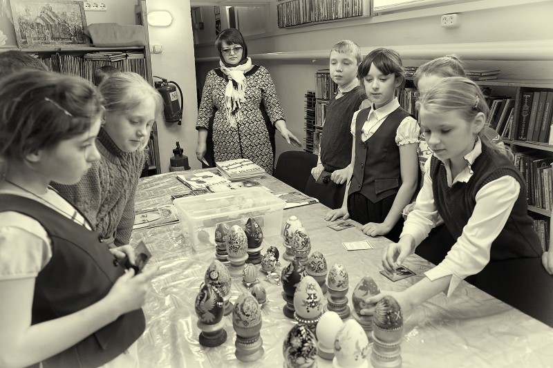 Им все очень интересно, и матушка Ксения Борисовна Лебедева, руководитель воскресной школы, с радостью рассказывает о православном искусстве, показывая на примере работы ребят из прихода: их рисунки и поделки.
