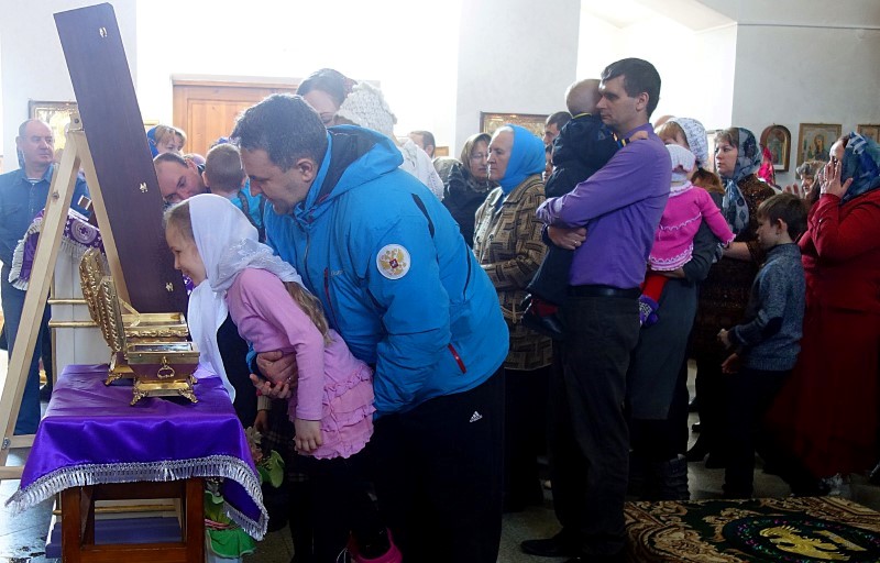 По окончании Литургии был отслужен молебен перед святынями, которые 12 апреля прибыли с крестным ходом в Ордынский район: Иверской иконой Пресвятой Богородицы, иконой св. мученика Вонифатия с мощами и двумя ковчегами с мощами святых угодников Божиих: св. апостола и евангелиста Матфея, св. апостола Симона Кананита, святителя Филарета, митрополита Московского; священномученика Владимира Четверина, св. праведного Феодора Томского и других святых.