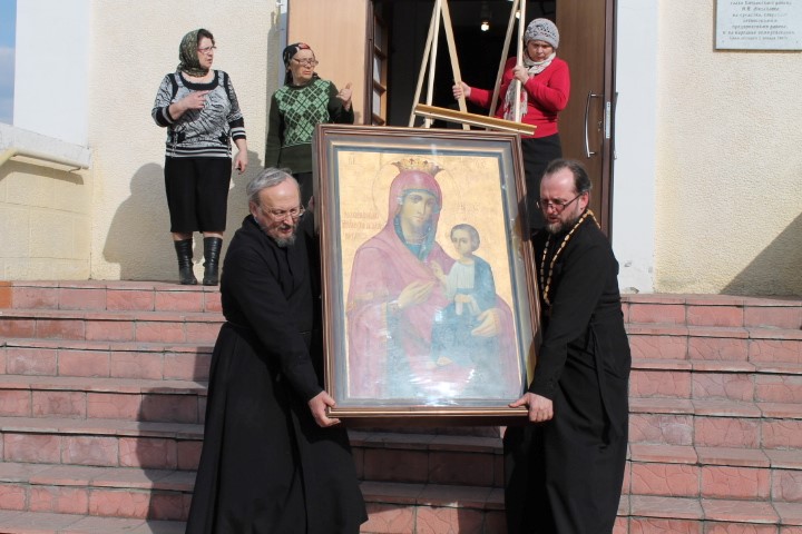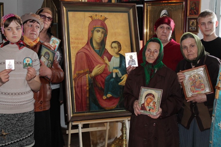 Затем святыни крестным ходом были доставлены в храм в честь Успения Пресвятой Богородицы с. Повинного. Множество прихожан пришло в этот воскресный день встретить заветные святыни, перед которыми также был отслужен молебен и прихожан тоже помазали освященным маслом.