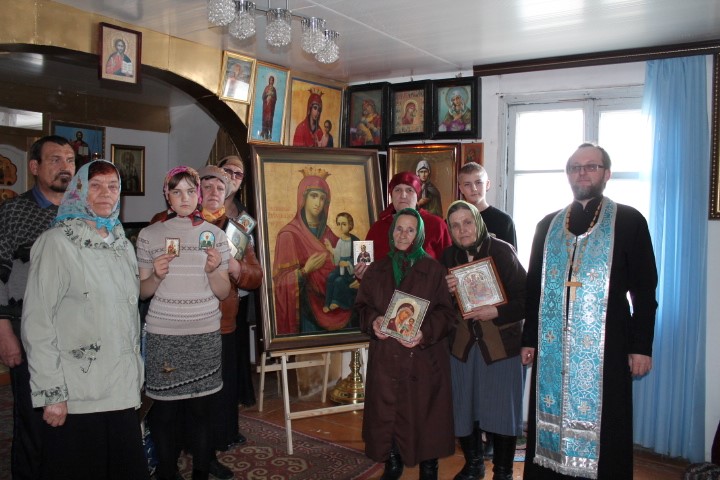 Его торжественно встретил в храме во имя Святителя Николая с. Мохнатого Лога иерей Евгений Зверев с прихожанами. Был отслужен молебен перед святынями, всех молящихся помазали освященным маслом.