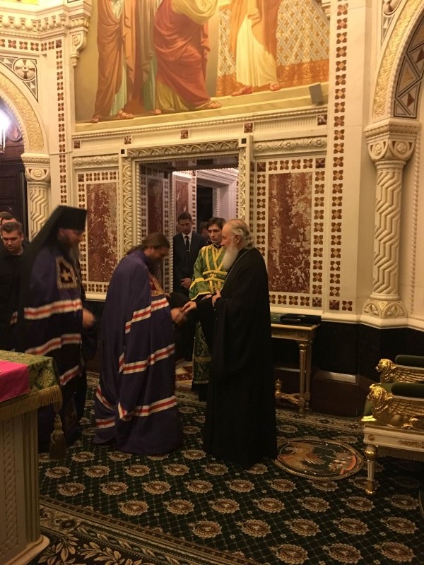 На малом входе указом Святейшего Патриарха Московского и всея Руси Кирилла за усердное служение Святой Церкви к празднику Святой Пасхи 2016 года права ношения креста с украшениями были удостоены клирики Московской городской епархии и ставропигиальных монастырей: