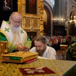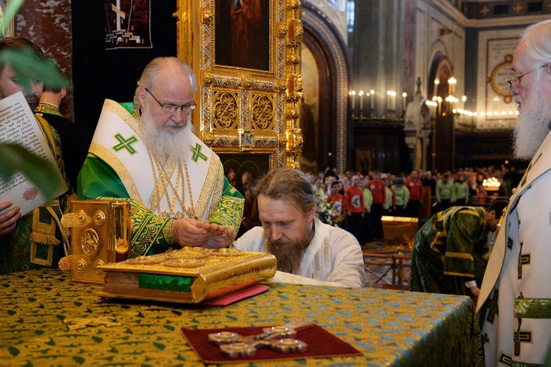 За Литургией Святейший Патриарх Кирилл рукоположил диакона Иоанна Трошина, клирика храма иконы Божией Матери «Знамение» в Аксиньине г. Москвы, во пресвитера.