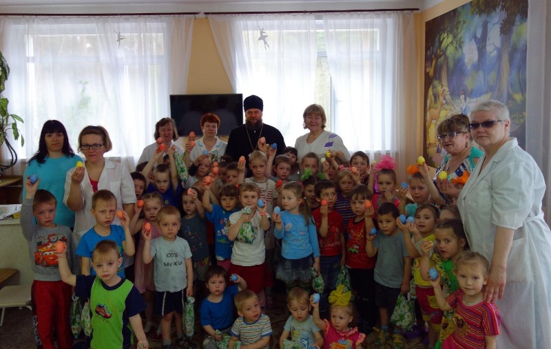 В этот же день епископ Филипп посетил детский дом №7 и детский дом №6, поздравил детей с праздником Святой Пасхи и раздал пасхальные подарки.
