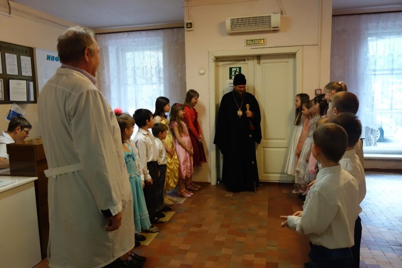 2 мая/понедельник Светлой седмицы. Епископ Филипп, в день праздника Святой Пасхи посетил детей детского туберкулёзного санатория №1 и №2. Сейчас в санатории проводится большая реконструкция: строится новый корпус, и поэтому все дети находятся в одном здании.