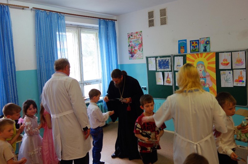 Тем не менее, на такой великий праздник, как Пасха, мы приезжаем и поздравляем детей. Дети готовят Пасхальный концерт, после чего мы раздаём им иконы и подарки.