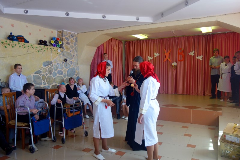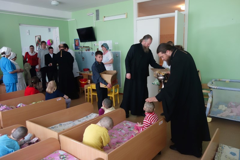 Ежегодно на праздник Святой Пасхи Владыка Филипп поздравляет этих тяжелобольных детей со светлым праздником. Дети своими силами готовят пасхальный концерт.