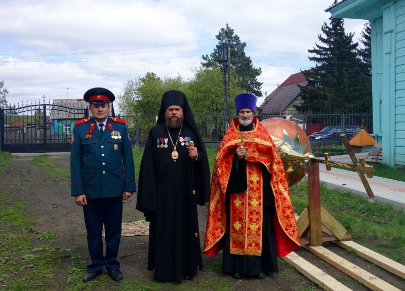 9 мая в 13.00 после поздравления ветеранов Великой Отечественной войны началось освящение новых купола и креста для храма во имя Святителя Николая в р. п. Одынском, которое совершили Его Преосвященство епископ Филипп, иерей Николай Иванов, иерей Константин Карамышев и иерей Сергий Гранкин.