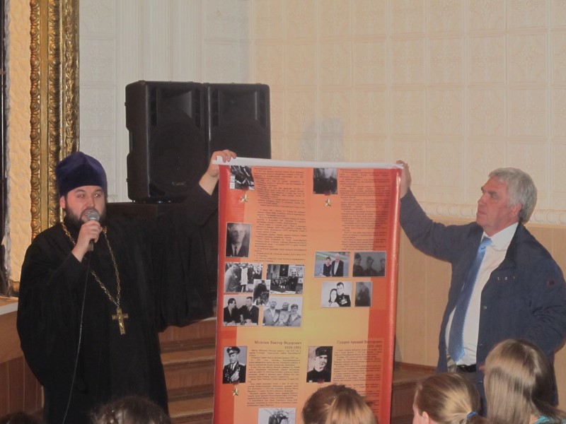 Мероприятие проведено усилиями Карасукской епархии, Региональной общественной благотворительной организации во имя апостола Андрея Первозванного, Совета ветеранов района, сотрудников краеведческого музея и учащихся ТЛ №176.