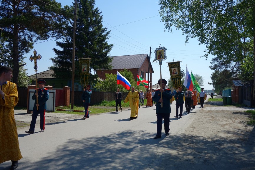24 мая/вторник. После Божественной литургии Его Преосвященство епископ Филипп, духовенство Карасукской епархии, казаки, ученики местных школ и прихожане Собора совершили крестный ход от собора в честь Живоначальной Троицы р. п. Ордынского по центральной улице рабочего поселка до храма во имя Святителя Николая Чудотворца.