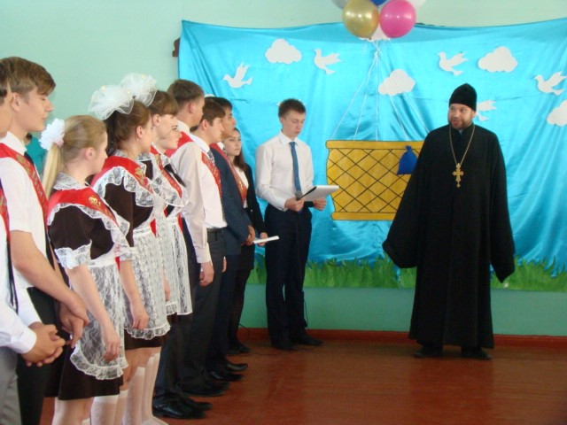 25 мая/среда. Иеромонах Мелхиседек (Свистелин), благочинный Центрального округа Карасукской епархии, посетил последний звонок в школе №148 города Купино.
