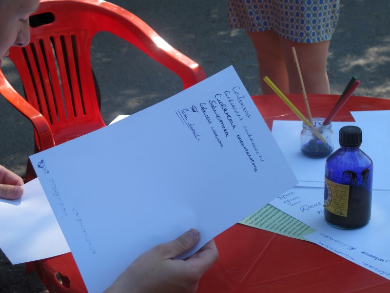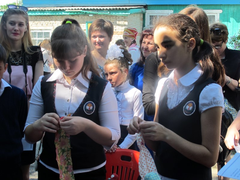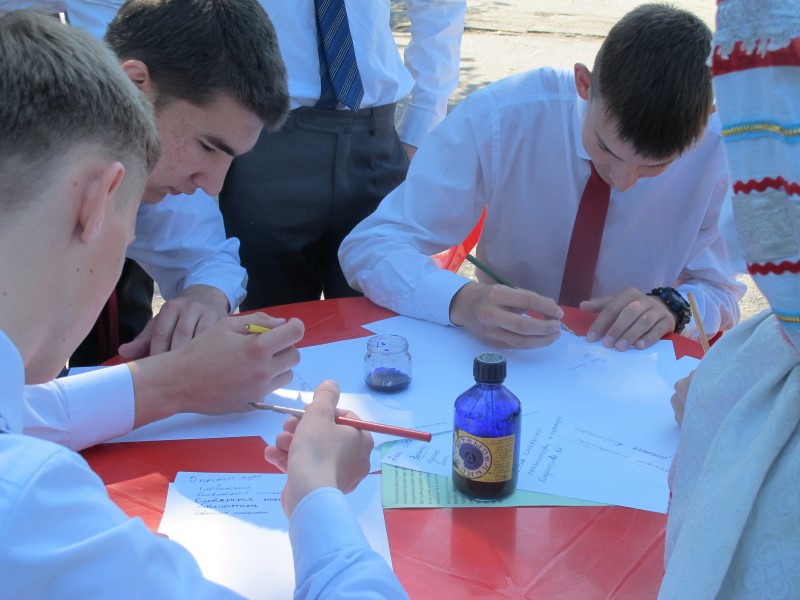 В 10.30 перед зданием Районной библиотеки расположились выставки, в игровой форме детям предложили отгадать ребусы и принять участие в конкурсе на знание русских пословиц и поговорок, а также познакомиться с биографией основателей славянской письменности Кирилла и Мефодия. Проведен мастер-класс по изготовлению русской текстильной куклы, желающие попробовали писать пером и чернилами. Также прошли познавательные тематические «Интерактивные игры».