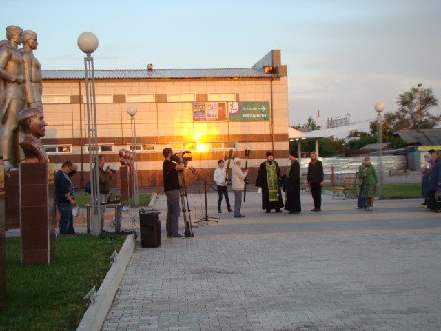 По окончании крестного хода у памятника героям фронта и тыла иеромонах Мелхиседек (Свистелин), благочинный Центрального округа Карасукской епархии, в сослужении иерея Димитрия Мжельского, настоятеля прихода в честь Успения Пресвятой Богородицы села Багана, совершил литию по почившим воинам.