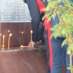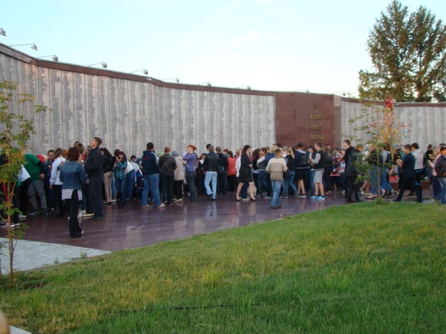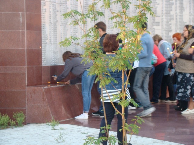 Участники мероприятия поставили свои зажженные свечи к памятной стене с именами почивших воинов.