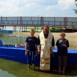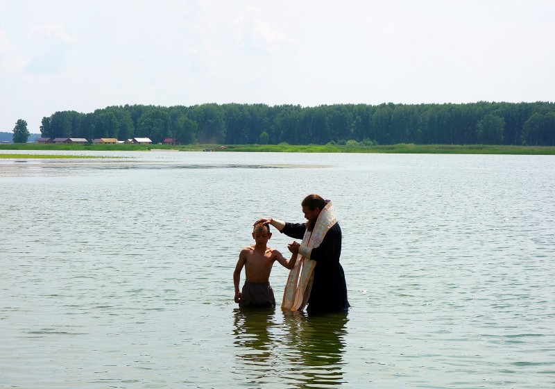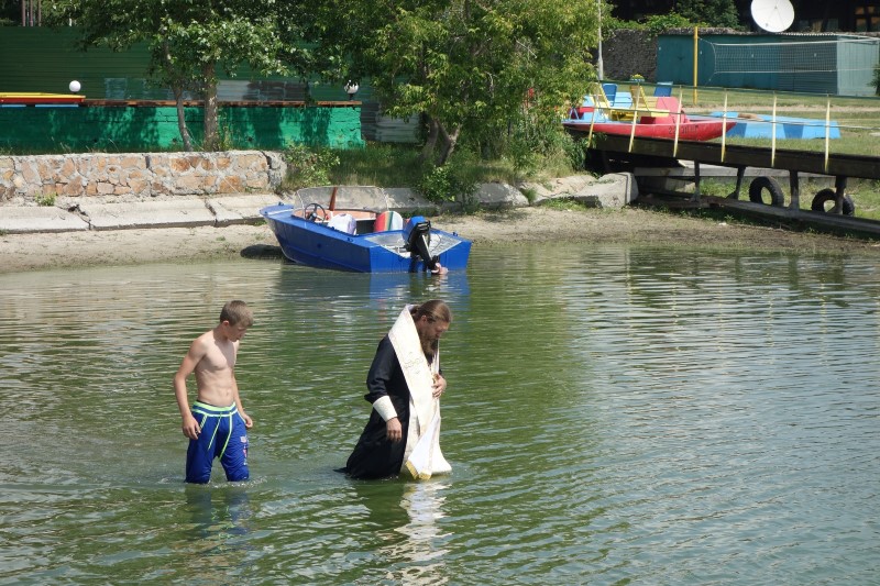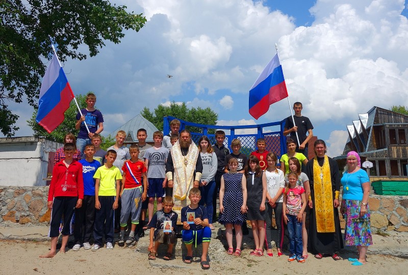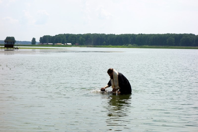 В солнечный день в 11 часов епископ Филипп прибыл в православный лагерь и вместе с иереем Константином Карамышевым, настоятелем собора в честь Живоначальной Троицы р. п. Ордынского, совершил Таинство Крещения детей прямо в водах Обского водохранилища.