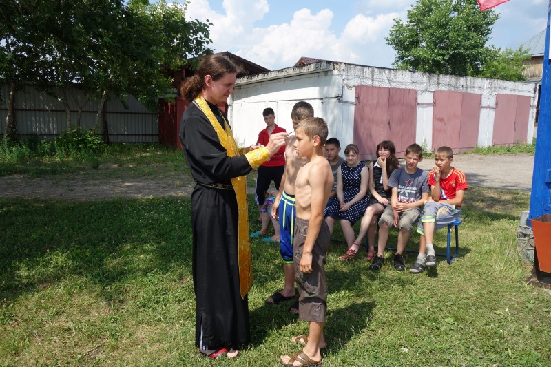В начале заезда среди детей всегда бывают те, кто еще не крещен. В течение недели с этими детьми ведутся огласительные беседы, после чего они готовятся к принятию Таинства Крещения.