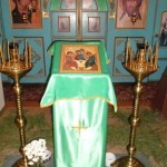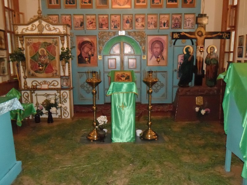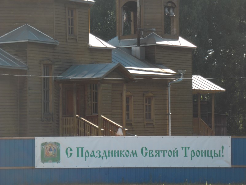 Надо отметить, что храм внутри был облачён в праздничные зелёные блестящие одеяния, украшен цветами, веточками берёзы и запашистой травой на полу, снаружи был повешен баннер «С праздником Святой Троицы!», что придавало празднику особую торжественность и привлекало людей посетить храм.