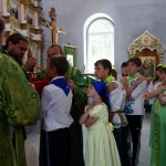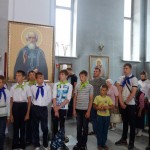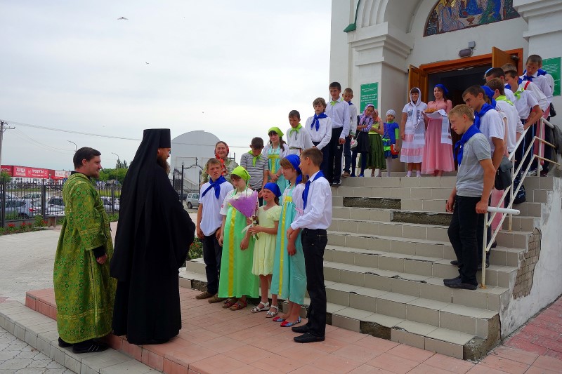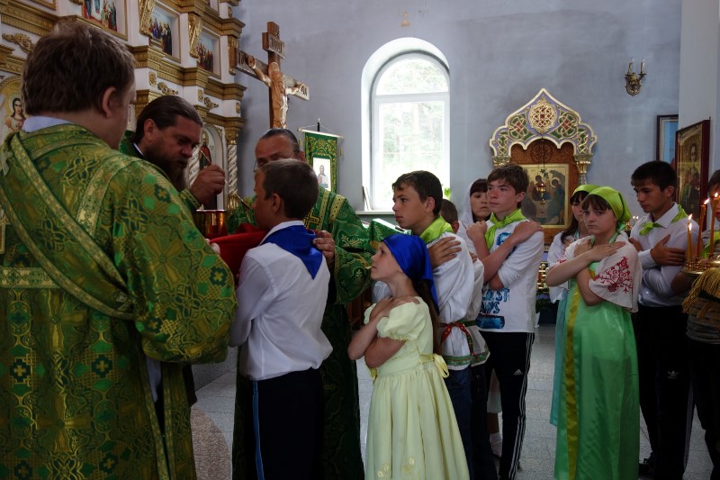 За Литургией дети принимали непосредственное участие в богослужении: пономарили, иподьяконствовали, кто-то из них даже пел на клиросе. Все дети исповедовались и причастились Святых Христовых Таин. Многие из них причастились впервые в жизни.