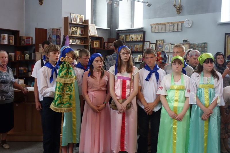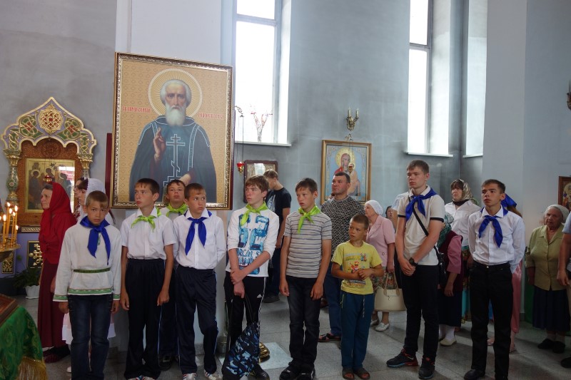 На Литургии присутствовали дети Православного детского лагеря во имя Архистратига Михаила. Все они приехали в летний лагерь из разных детских домов и школ-интернатов Новосибирской области.