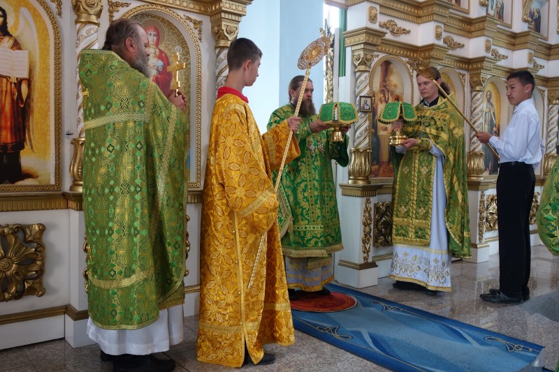 26 июня/воскресение. В Неделю 1-ю по Пятидесятнице, Всех святых, Его Преосвященство епископ Филипп возглавил Божественную литургию в соборе в честь Живоначальной Троицы р. п. Ордынского, ему сослужили настоятель собора иерей Константин Карамышев и иерей Сергий Гранкин.
