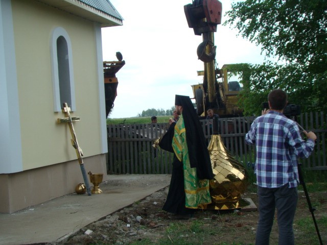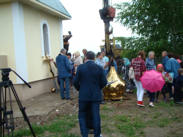 Затем со словом к присутствующим обратились глава г. Купино Анатолий Владимирович Шевченко и благодетель, изготовивший купол и крест, Анатолий Константинович Тимонов.