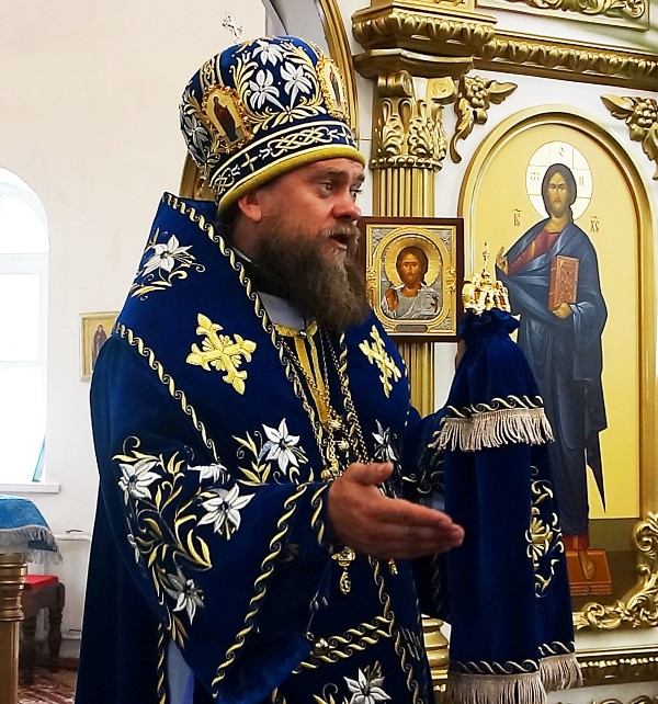 В приветственном слове Владыка поздравил всех с праздником Успения Пресвятой Богородицы и напомнил, что Церковь не называет кончину Божией Матери смертью, а называет ее успением или, что все равно, упокоением или мирным сном, и не только не скорбит по этому случаю, а даже поет радостные торжественные песни Ее исходу. Это потому, что Матерь Господа нашего Иисуса Христа на самом деле не умерла, как обыкновенно умирают люди, а как бы уснула ненадолго мирным сном после тяжких скорбей жизни и что гроб ее, бывший для Нее дверью к Небесному Царствию, скрывает в себе много радости для христианина.