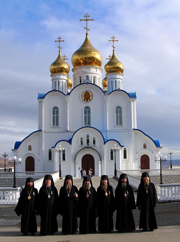 Возлюбленные братия и сестры, дорогие наши архипастыри, дорогие мои собратья, уважаемый Владимир Иванович и Валерий Федорович, все здесь присутствующие прихожане нашего собора! Позвольте мне всех вас поздравить с торжествами, которые в течение 2016 года мы празднуем, отмечая 100-летие Петропавловской и Камчатской епархии. В 1916 году Святейший Синод принял постановление об открытии на Камчатке самостоятельной епархии. С первыми первопроходцами шли в наш край православные проповедники, которые несли с собой слово истины, слово спасения всем народам, живущим здесь. Они приобщали коренные народы к великой русской культуре и к его спасительной вере православной.