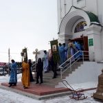 По окончании Литургии прошел крестный ход вокруг собора.
