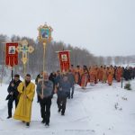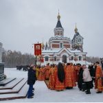 После Литургии состоялся крестный ход к поклонному кресту в честь погибших в годы репрессий с молебном и освящением Креста.