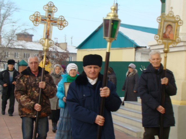По окончании Божественной литургии был совершен крестный ход вокруг храма.