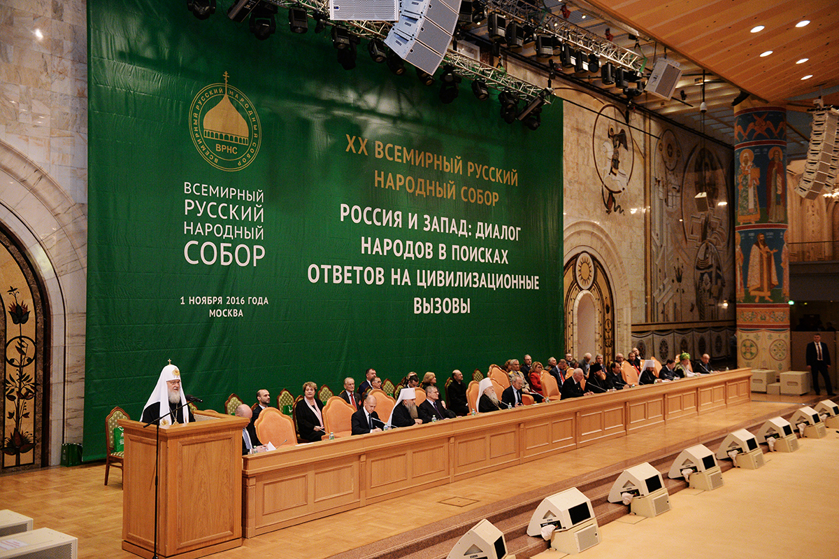 1 ноября 2016 года Святейший Патриарх Московский и всея Руси Кирилл выступил с докладом на открытии XХ Всемирного русского народного собора «Россия и Запад: диалог народов в поисках ответов на цивилизационные вызовы».