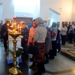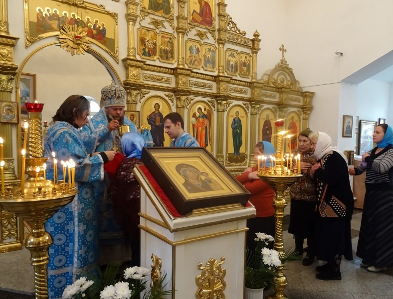 По окончании Литургии состоялся молебен перед чтимым образом Божией Матери «Казанская», а по его окончании Владыка вознес молитву Пресвятой Богородице и окропил всех святой водой.
