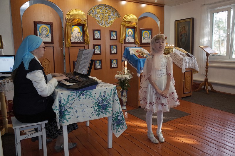 4 ноября приход храма во имя прп. Сергия Радонежского в р. п. Краснозерском отметил праздник Казанской иконы Пресвятой Богородицы и День народного единства торжественной церковной службой и совместным концертом учащихся приходской воскресной школы, руководитель которой матушка Ксения Борисовна Лебедева, и Детской школы искусств р. п. Краснозерского, руководитель — Евдокия Геннадьевна Понамарева.