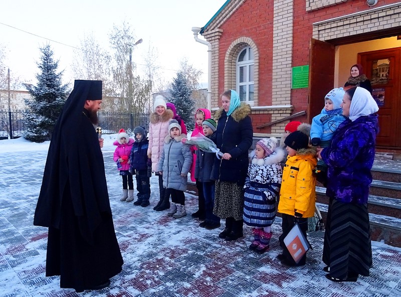 По окончании Литургии Владыка поздравил всех с воскресным днем и напомнил, что по окончании богослужения в здании воскресной школы при Кафедральном соборе состоится родительское собрание для родителей, дети которых обучаются в воскресной школе.