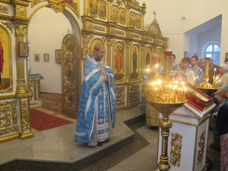 В самом конце богослужения батюшка напомнил прихожанам о приближающемся престольном празднике Карасукского кафедрального собора.
