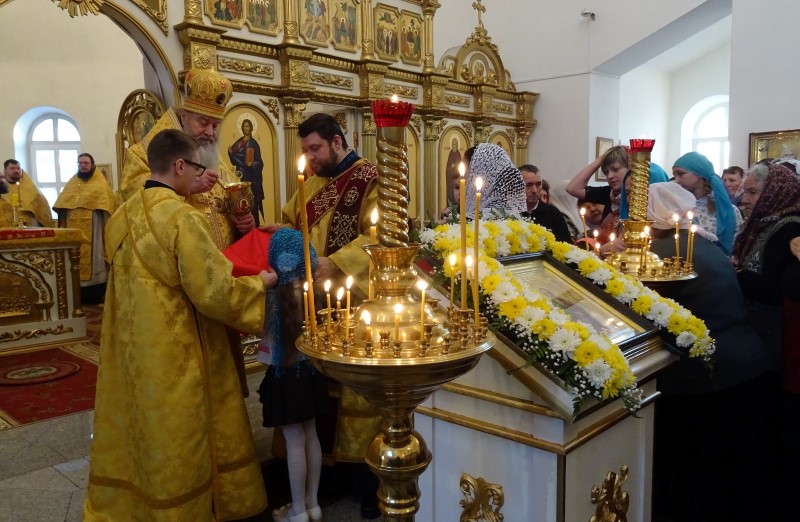 Митрополит Тихон возглавил праздничную Божественную литургию в Кафедральном соборе в сослужении епископа Филиппа, епископа Луки, епископа Феодосия и духовенства Карасукской епархии. По окончании Божественной литургии состоялся крестный ход вокруг собора.