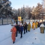 По окончании Литургии состоялся традиционный крестный ход вокруг храма, после чего Владыка поздравил духовенство и прихожан с престольным праздником, окропил всех святой водой и напомнил, что Святитель Николай является покровителем г. Новосибирска, который раньше назывался Новониколаевском. А также является покровителем Орынского района, т. к. самый первый храм, который здесь был построен, посвящен свт. Николаю Чудотворцу.
