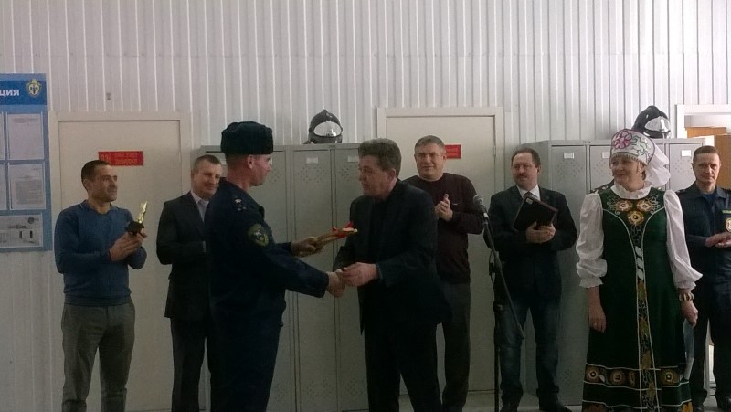 С наилучшим пожеланием иерей Константин преподнес в дар руководству пожарного депо образ иконы Божией Матери, именуемой «Неопалимая Купина», и пожелал, чтобы личный состав пожарных, который отправляется тушить пожар, всегда возвращался в полном составе.