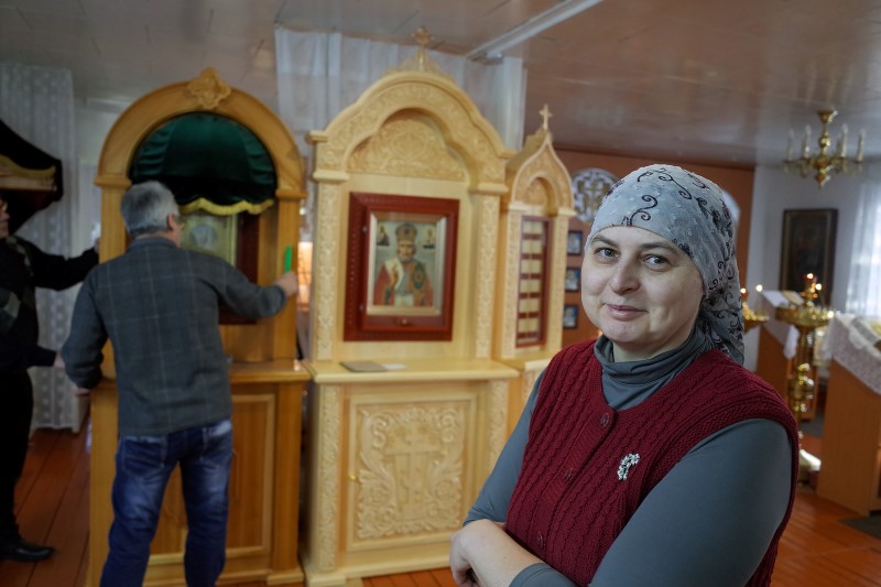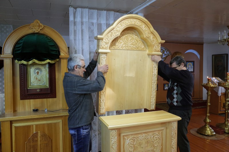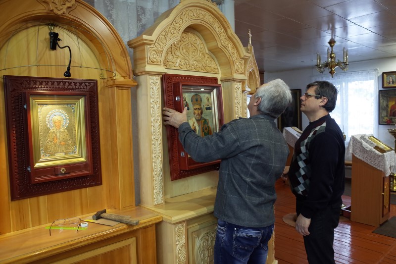Милость Божия и большая радость для сельских прихожан – нахождение такой великой святыни в нашем маленьком сибирском приходе. Более года селяне собирали средства на изготовление киота.