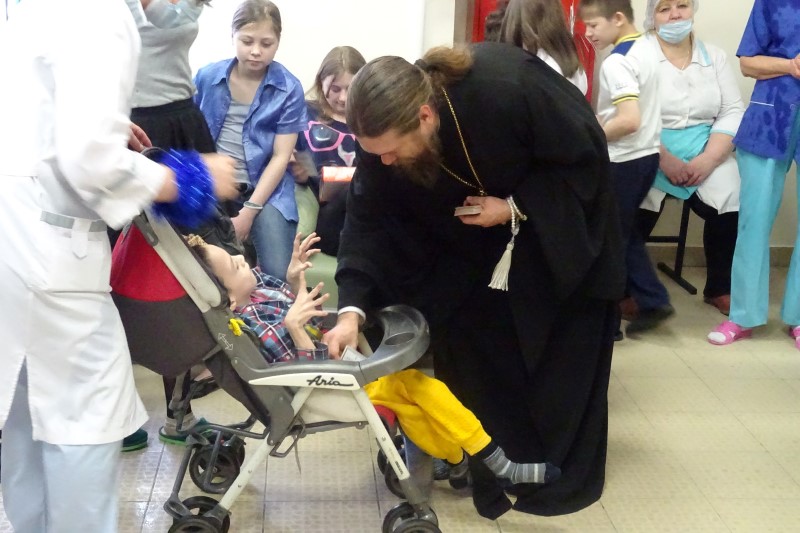 И сколько радости бывает у детей! Едва Владыка переступает порог санатория, как детишки уже с радостными приветливыми улыбками тянутся к нему, ждут его всегда с большим нетерпением. Ведь это заведение закрытого типа и не так часто к ним приезжает кто-либо из официальных лиц, чтобы поздравить их с праздником.
